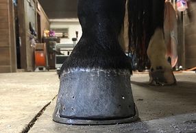 Older school horse with arthritis, barefoot behind, had excessive wear problem. We put in HoofTaps, image is at 5 weeks. As shown, there is plenty of growth. Apologies for not having the before image, cell phone was not handy.
