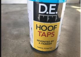 D.E. Hoof Taps have proven to be quite useful tools for many of the hoof maladies and structural defects that we commonly see. I most often apply the hoof taps in cases of white line disease (pretty common in southern Florida!) and hoof cracks. The taps having an anti-bacterial surface is an important feature, and clients love that they can be applied under any type of shoe. Hoof taps are simple to apply, and I have gotten visible results that both the client and I can easily see.